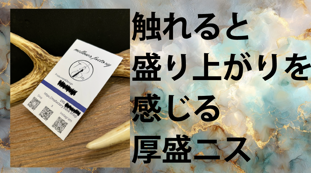 数回の微調整の後、紙質、印刷方法についてもご提案。厚盛ニスはお客様にもご興味を持っていただけました。